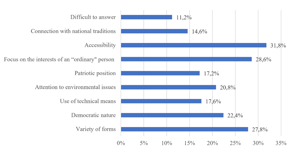 Figure. 6. Responses of urban residents to the inquiry: «What factors may be utilized to apart urbanized culture from «cultural waste”? (select maximum 2 answers)