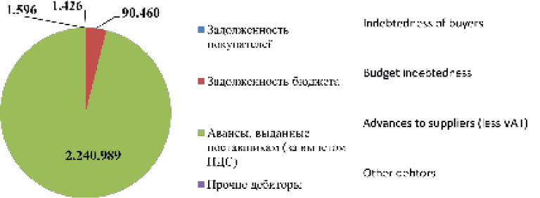 According to the diagram below (fig.2), the main accounts payable amounts are accounts payable to suppliers and contractors. These accounts payable are not overdue. Based on the results of the audit of primary documentation forms and statements in terms of accounts receivable and payable, we can conclude that Ilsky Oil Refinery LLC follows a conservative way, reducing its indebtedness to buyers on received advances faster than they pay for shipped products.