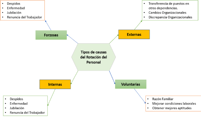 Fuente: Diagrama de las causas de la rotación del personal, invención propia, 2022., en base a (Chiavenato, 2011) y (Robbins, 2013).