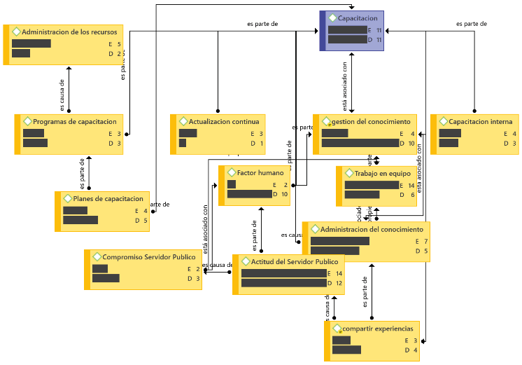 Derivado del análisis de la entrevista realizada a los actores como lo son los directores financieros de tres instituciones de gobiernos (organismos descentralizados), se realizó una categorización de las variables de Capacitación y rotación del personal (Servidores Públicos), con el fin de agrupar los campos con relaciones y niveles altos de co-ocurrencias.