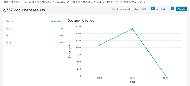 Gráfica 1. Cantidad de documentos 2,757 relacionados en la base de datos revisada (Scopus)