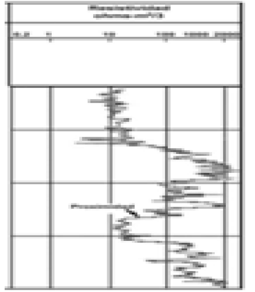 Los rangos para determinar el contenido de rocas con contenidos de arcillas y lutitas dentro de la formación a perforar van de 0 a 200 API lo que indica que las lutitas la podemos encontrar en un rango de 150 a 170 API, mientras que las arcillas van de 170 a 200 API, cabe señalar que de 0 a 150 podemos encontrar otros tipos de rocas tales como carbonatos o rocas ricas en feldespato.