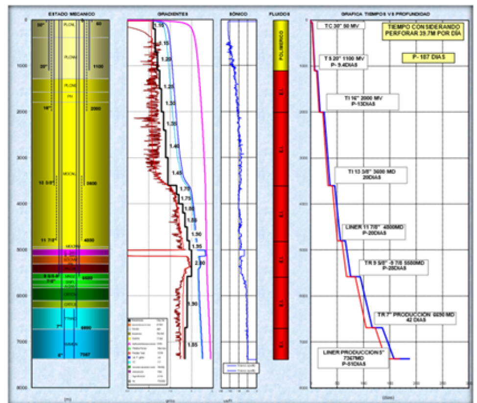 Un estado mecánico es la representación del perfil del pozo donde se visualizan los parámetros físicos relacionados con las propiedades geológicas y petrofísicas del comportamiento de los estratos que han sido perforados (Gómez, 2006; p. 36).