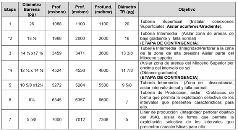 Pemex. 2016. Programa de Perforación. Comalcalco, Tab. pp. 8-150.