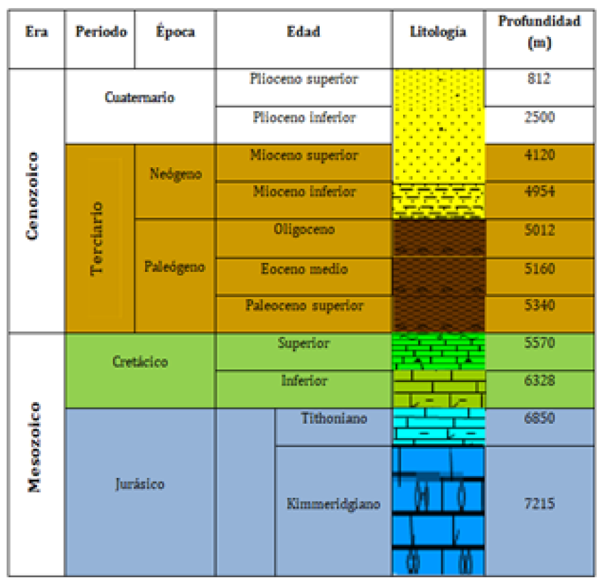 Figura 18. Columna geológica del Chocol-1(PEMEX, 2016)