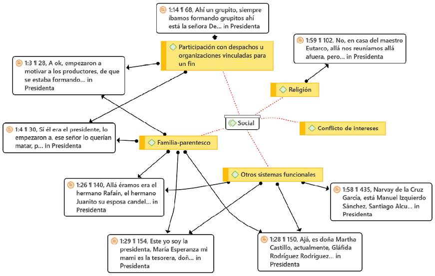 Este yo soy la presidenta, María Esperanza mi mami es la tesorera, doña Martha Castillo es la Secretaria, Neli la vocal, y Glafida es vocal… Entrevista 1: cita 80.