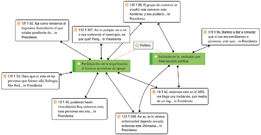 O sea, como también el espacio donde estaban no era de ellos, o no sé si estaban rentando y todo se vino abajo; eso se perdió creo que era algo que les había dado SEDESOL o no sé de qué dependencia y se perdió todo. Y como este caso, también está por ejemplo el de la “La Tía Tana” que igual tenía una red de mujeres, pero es que también entró la ambición de la mala. Entrevista 1: cita 55.