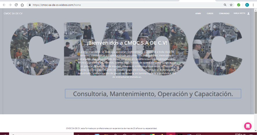 Figura 4. Pagina de cursos online CMOC. www.cmoc-sa-de-cv.wisboo.com