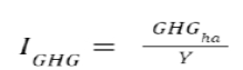 ∑ where R(i) is the application ratio of input i (unitinputha-1) and EF(i) is the GHG emission coefficient of input i (kg CO2-equnitinput-1). An index is described to evaluate the amount of emitted kg CO2-eq per kg yield as following adapted Houshyar et al. (2015) and Khoshnevisan et al. (2014). Where IGHGGHG is GHG ratio and Y has the yield as kg per ha (Eren et al., 2019b).