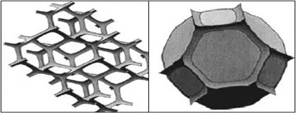 Figure 2. Cell shapes in polymers: (a) Open cell structure in polymer foam, (b) Closed cell structure in polymer foam [5]