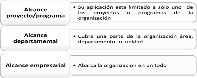 El alcance permite administrar la gestión de proyectos dependiendo de la necesidad de la organización con una clara metodología y optimizando recursos, con el fin de cumplir con los objetivos y nivel de satisfacción para los involucrados e interesados dentro de la organización y principalmente al sponsor, quien finalmente evaluara si fue eficiente y eficaz en su metodología de ejecución.