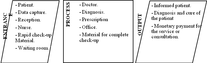 The output refers to the result of the process; this stage includes the informed patient, diagnosis and cure of the patient. Also, the monetary payment of the service or consultation.