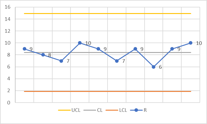 Figure 3 shows the variation time in each medical consultation is very different from the range, similar to the average amount, either higher or lower on any day of the week. According to the results revealed, it can be deduced that the process is in control, since there are no variations of assignable cause, that is, all the points are within the control limits.