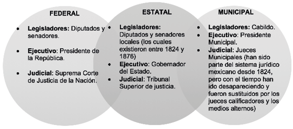 En el caso de México, la previsión normativa del federalismo se encuentra regulada fundamentalmente en los artículos 40 y 41 de la CPEUM (Congreso de la Unión, 2021), pero lamentablemente se comprende que en el pacto federal solo coexisten dos esferas, la de los estados y de la federación. Es decir, se omite mencionar al gobierno municipal. La anterior situación es incongruente con las aspiraciones de los diputados que integraron el Congreso Constituyente durante los años de 1916 y 1917. En específico, se destacan las palabras del diputado constituyente, Humberto Jara (1917), de las que se entiende que el municipio forma parte de este pacto federal y que como tal cuenta con sus tres poderes al igual que las otras esferas: