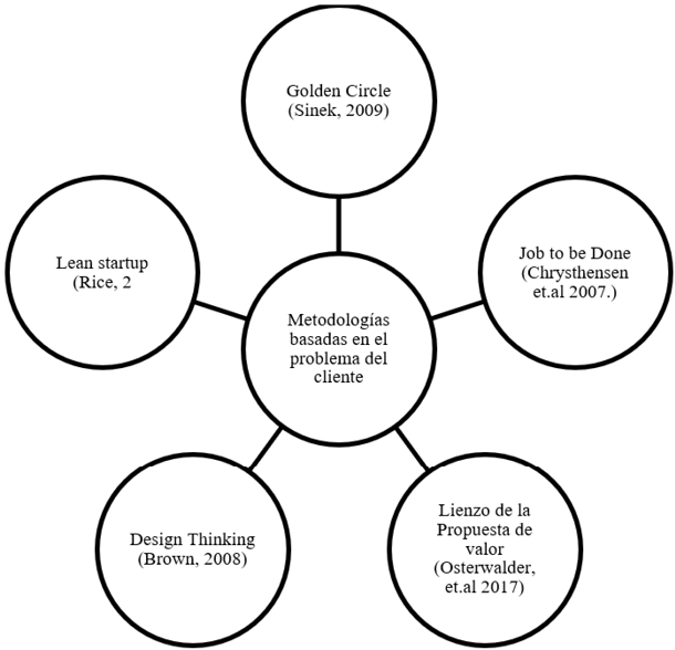 Como se puede apreciar en la figura 1 notamos que metodologías como el Golden Ring (Sinek, 2009), Lean Startup (Rice, 2011), el Design Thinking (Brown, 2008), el Lienzo de la Propuesta de Valor (Osterwalder et.al, 2017), así como el Job to be Done (Chrysthensen et.al 2007) son algunas de las cuales han fincado su desarrollo en empatizar, observar y estudiar a la persona que consume un producto o servicio, y a través del uso de dicha técnica, se encuentre una solución con la que coincida en valor y por lo tanto la adquiera.