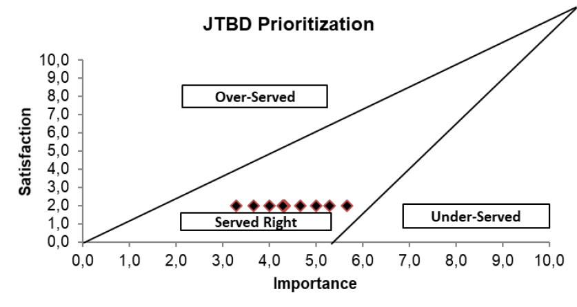 Figura 1. Priorización de los JTBD. Elaboración con base en la metodología Job Prioritization