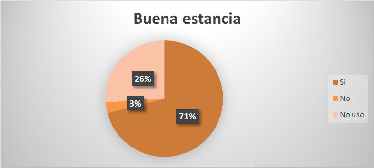 Interpretación: En La gráfica se puede observar que las personas encuestadas, un 71% afirmó que el hospedaje Si cubre los requisitos para una buena estancia, el 3% dijo que No y el 26% No ocupo el servicio. (Gráfico 1.2).
