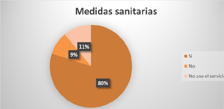 Interpretación: en el gráfico se observa que el 80% de las personas encuestadas respondieron que el restaurante Si cuenta con las medidas sanitarias para brindar un buen servicio, el 9% respondió en que No y el 11% no consumió nada en el restaurante. (Gráfico 2.1).
