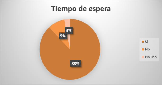 Interpretación: De las personas encuestadas un 88% respondió que Sí es adecuado el tiempo de espera para la preparación de los alimentos, un 3% dijo que No es un tiempo adecuado y el 9% de los encuestados no consumieron algún alimento preparado. (Gráfico 2.3).