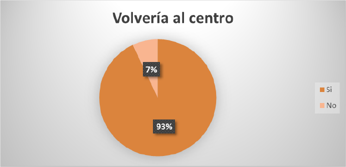 Interpretación: El 93% afirmó que Si volvería a visitar éste Centro Ecoturístico, mientras el 7% dijo que no regresaría Gráfico (4.4).