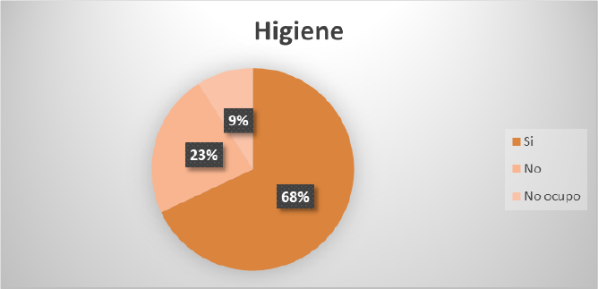 Interpretación: El 68% respondió que la higiene de los baños y vestidores Si es adecuado, mientras el 23% dijeron que No y el 9% No ocupo del servicio (Gráfico 5.2).