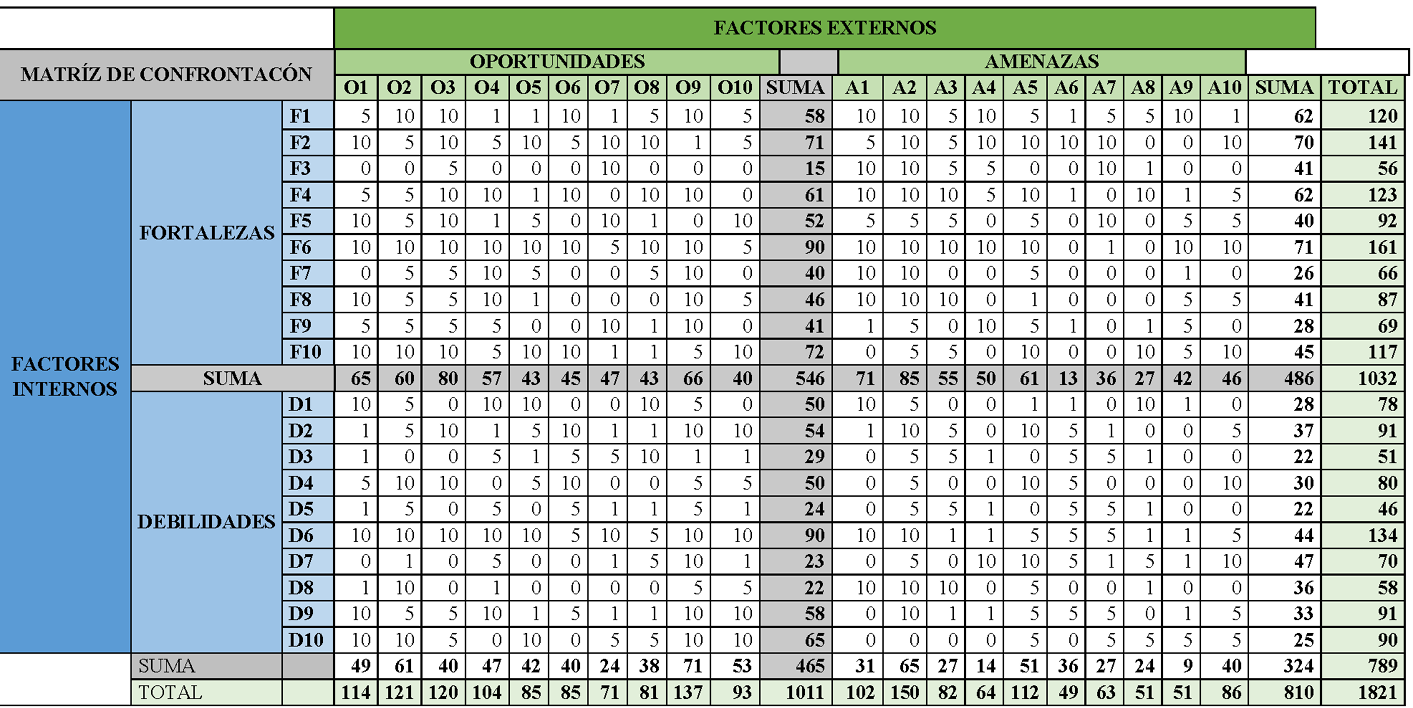 Se cuantificara cada factor en una tabla con todas las variables a estudiar, se suman los resultados totales y se obtiene información muy valiosa sobre qué cuadrante hay que prestar más atención, cuales son los factores a tener en cuenta más importantes y qué estrategias debe realizar la empresa para potenciar unos y evitar otros.
