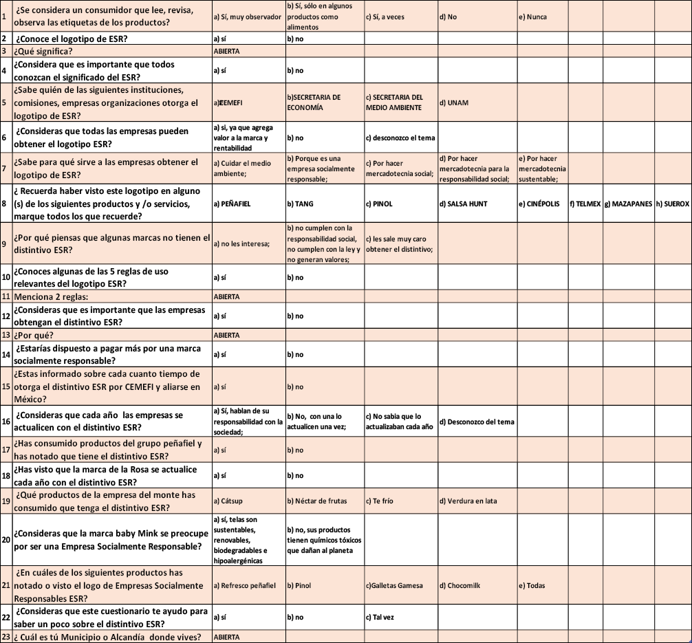 Respecto al método, este se realiza en dos partes, en la primera se usó el método de recolección de datos cuantitativo (Sampieri, Méndez, & Mendoza, 2017), se diseñó un cuestionario elaborado con el software de Microsoft Forms, con 23 preguntas, 3 abiertas, 10 dicotómicas, 10 de respuesta múltiple, con el objetivo de conocer ¿qué tipo de consumidor se consideraban respecto a la revisión de las etiquetas, si veían los logotipos en las etiquetas, si identificaban y qué tanto conocían sobre el distintivo de ESR. Se envió a la población en general, considerando a la ciudad de México y al Estado de México se envió por redes sociales como WhatsApp y Facebook del 11 a 18 de enero de 2021.