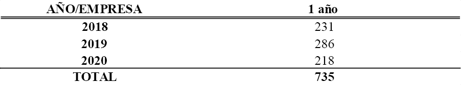 Tabla 3. Empresas Pymes, para los años 2018, 2019 y 2020