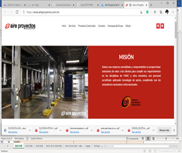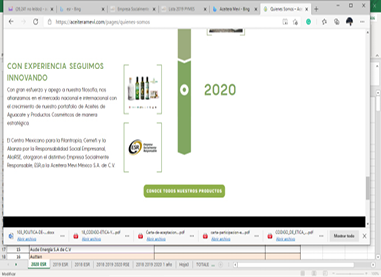 En la tabla 4, están las imágenes de algunas empresas que se seleccionaron para mostrar que efectivamente presentan en sus páginas de Internet el distintivo de ESR, que lo obtuvieron en el año 2020.