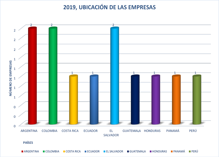 Imagen 21. 2019, Ubicación de las empresas, por países de Latinoamérica
