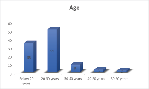 A majority of the respondents (51%) were aged 20 to 30 years while 35% of them were aged 20 or below. The percentages of respondents lying in the 30-40 years, 40-50 years and 50-60 years are 9, 3 and 2 respectively.