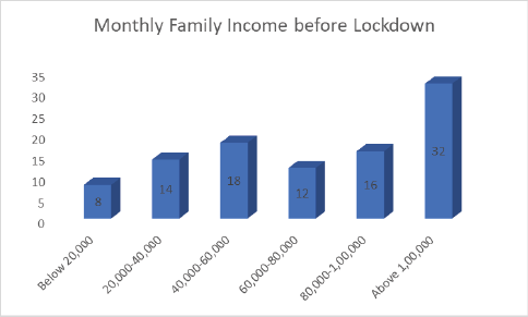 Only 18% of the respondents’ family income was more than INR 1,00,000 per month during lockdown.