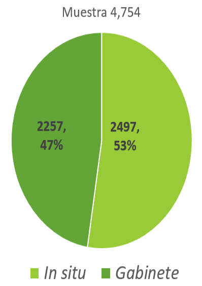 La muestra de estudio de 4,754 sitios fue definida de un universo de 12,147, los cuales se deben de validar usando dos instrumentos. El primero es una validación física del inmueble de 2,257 sitios, concentrando información básica para su identificación (fotos, responsable del sitio, georreferencia, domicilio, entre calle, tipo y subtipo de inmueble, dependencia responsable, longitud, latitud, datos de contacto, clasificación del tipo de localidad, tipo de acceso, responsable directo y responsable indirecto, municipio, localidad, tipo de población, numero de habitante, servicios básicos -Luz y seguridad en el inmueble-, región), equivalente al 47% de la muestra definida por los comités. En la fig. 3. Se muestra parte del instrumento utilizado, herramientas colaborativas y evidencias que describe y validad el sitio o inmueble propuesto para ser propuesto para recibir conectividad de internet.