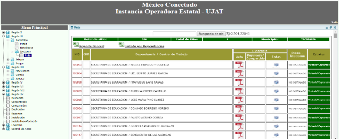 Con la información integrada y normalizada se proyecta el crecimiento tecnológico por cada región en el Estado de Tabasco, brindando con ello un mapa de los recursos tecnológicos asignados y existentes en la región, estableciendo a partir de este instrumento un marco de referencia y guía para evitar duplicar recursos y fortalecer zonas donde aún no se cuenta con algún tipo de servicio tecnológico a beneficio de la sociedad. Esto permite medir la obsolescencia de los recursos tecnológicos implementados y su posible mantenimiento o reemplazo para seguir brindando un servicio de mejor calidad a beneficio de la sociedad.