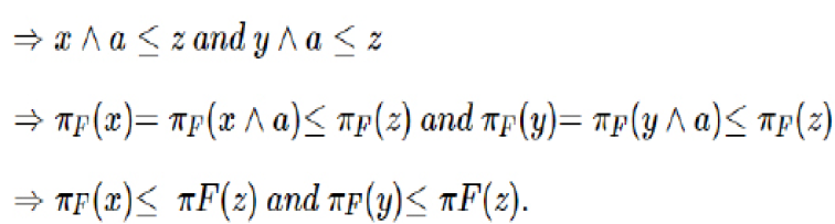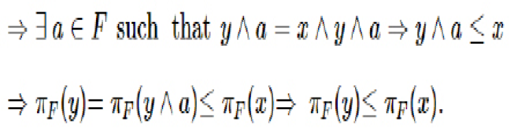 Now, let x and y ϵ S-F, Since F is maximal, there exist a,b ϵ F, such that a Λ x ≤ y and b Λ y ≤ x. Hence πF (x) = πF (a Λ x) ≤ πF (y) = πF (b Λ y) ≤ πF (x).