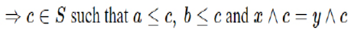 Definition: 2.3. [5] A semilattice S is said to be distributive if, for any a,b,c ϵ S, such that a Λ b ≤ c, there exist x, y ϵ S such that a ≤ x, b ≤ y, and x Λ y = c.