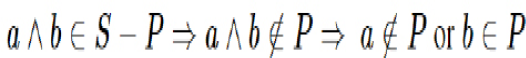 Conversely, suppose S - P be a prime ideal, then S - P ≠ Ø, S. So that P ≠ Ø, S. Since S - P is directed above, and then P is directed below. If a,b ϵ P then a,b ∉ S - P. Since S - P is prime, a Λ b ∉ S - P. Thus a Λ b ϵ P, and so P is a filter.