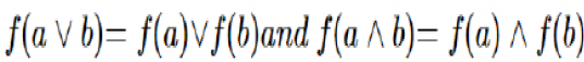 Let S and L be semilattices. A map f : S → L is said to be a homomorphism, if f is join preserving and meet preserving, that is, for all a,b ϵ S.