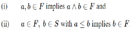 Similarly, suppose that J is a nonempty filter of S. For any a,b ϵ J, there exist c ϵ J such that c≤ a and as J is the final segment. Then, J is a sub-semilattice of S. Let a,b,c ϵ J such that a Λ b ≤ c, there exist x,y ϵ S such that a ≤ x, b ≤ y, and x Λ y = c.