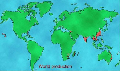 Notes: 1-Australia; 2-China; 3- Florida, 4-Hawaii (USA); 5. India; 6 - Israel; 7-Madagascar; 8- Maurice; 9-Resunion; 10- South Africa; 11- Taiwan; 12- Thailand; 13-Vietnam.