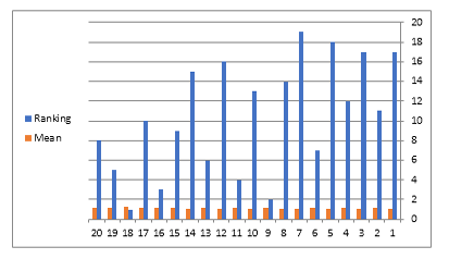 Figure (2) provides a description of the responses and frequencies in the study sample in light of the Corona pandemic. All phrases were high in ranking, and most of the responses were high, which demonstrates a great challenge regarding the importance of using distance education and benefiting from it being an important factor in educational process.