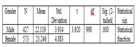The question states (Are there statistically significant differences on the scale of educational platforms in distance education during the COVID-19 pandemic from the viewpoint of the University of Tabuk students in light of some variables (gender - specialization theoretical / practical - school stage - location of study) - Students are students with special needs for teaching?) To answer this question, a T-test and one-way analysis of variance were used, and the following tables illustrate that: For the gender variable: Table No. (5) The table shows the differences between the average degrees of males and females in the use of educational platforms in distance education.
