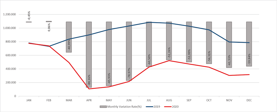 Table 4. The number of Turkey air traffic in 2020 vs. 2019