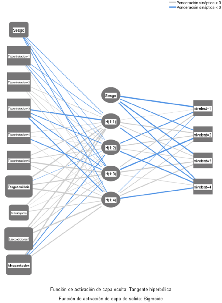 Figura 1. Red neuronal para el pronóstico de variables de calidad de vida laboral.