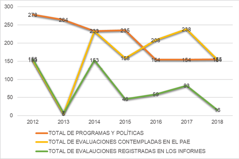 Gráfica 2. Evolución de las evaluaciones de los programas y políticas en México, 2012-2018