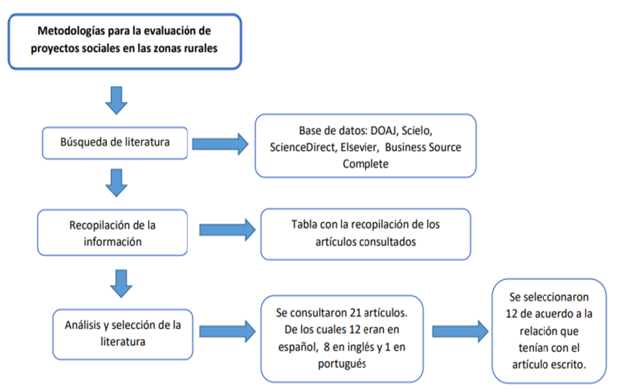 En la revisión de literatura se consultaron 21 artículos, en los cuales se encontró la conceptualización de diferentes metodologías para la evaluación de proyectos sociales y casos de estudio práctico a nivel nacional e internacional.