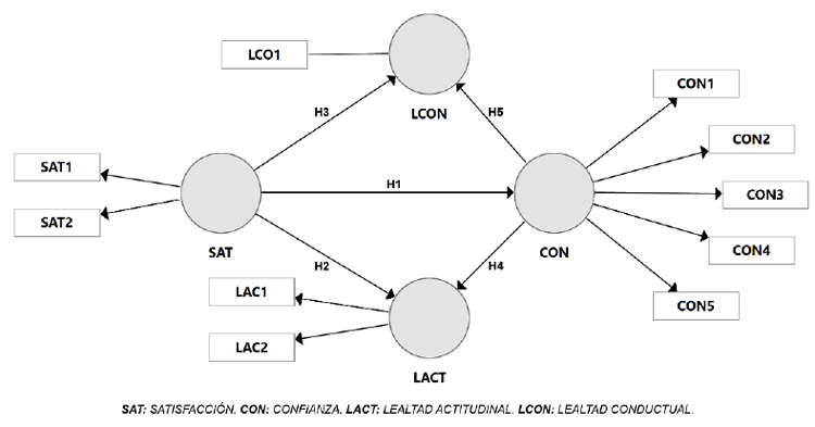 El constructo confianza es considerado un referente que explica la formación de relaciones de valor que puedan desarrollarse y sostenerse a largo plazo (Chiuo y Drogue, 2006; Garbarino y Johnson, 1999; Morgan y Hunt, 1994; Raimondo et al., 2008; Lin y Lu, 2010). Confirmando su influencia en la formación de lealtad y el fortalecimiento de relaciones, que se refleja cuando un cliente considera que la empresa responde atendiendo a sus necesidades e intereses (Vera y Espinoza, 2014; Schlesinger et al., 2014). Ante los argumentos de la literatura se plantean las siguientes hipótesis: