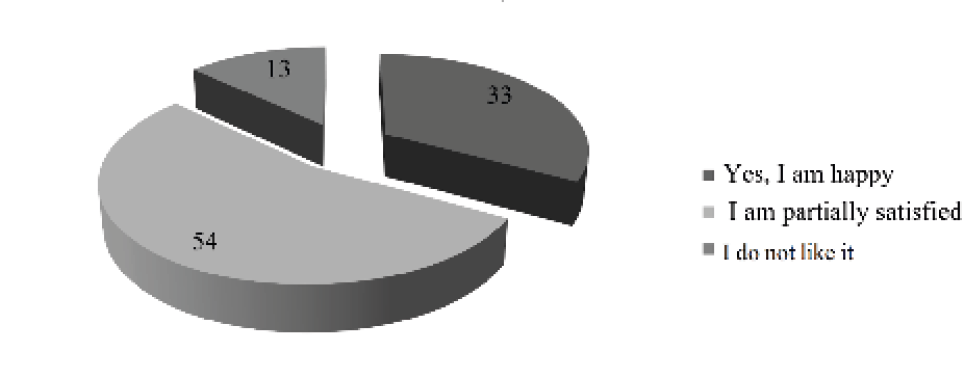 Based on the results of this figure, we can conclude that the majority of teenagers are satisfied, but not exactly with their leisure time in the Voznesenovsky rural settlement. This can be explained by the fact that the countryside does not have all the available means for encouraging a versatile and complete organization of leisure for teenagers. Basically, only the Voznesenovsky CCD and the school work together with the children. It should be noted that the sociocultural environment of rural areas differs in its infrastructural content. It is the cultural and leisure institutions that remain the most visited and in demand among the population in terms of leisure-time activity.